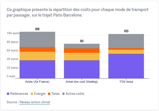 La società di consulenza Carbone 4 ha analizzato la tratta Parigi-Barcellona, dove il prezzo del treno costa tra il 20% e l’80% in più rispetto all’aereo.